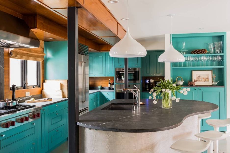 Если вы являетесь любителем креативных и нетривиальных дизайнов и красная кухня кажется вам слишком банальной, используйте данный цвет в качестве акцентного
