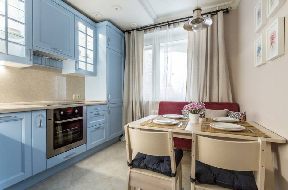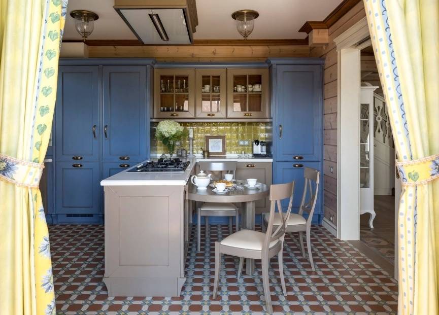 В данном случае голубые плотные шторы не всегда будут уместны, поэтому при выборе крайне важно учитывать стиль интерьера в целом. Для кухни в стиле прованс подойдут изделия с цветочками и лаконичными узорами