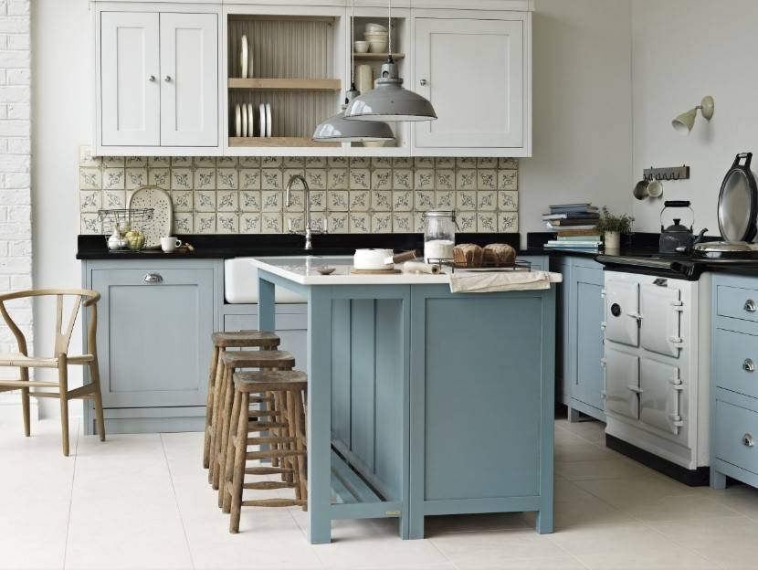 Оформление интерьера кухни в голубом цвете – это не только мебель, но и дизайн стен. От этого зависит визуальное восприятие помещения и в целом создание того или иного стиля. Поэтому если вам по душе стиль прованс или кантри, то смело оформляйте стены в голубом цвете. Выглядит это действительно очень красиво и по-домашнему уютно. Если такой подход вам не близок, попробуйте сделать акцентную голубую стену. Благодаря этому дизайн кухни будет более светлым.