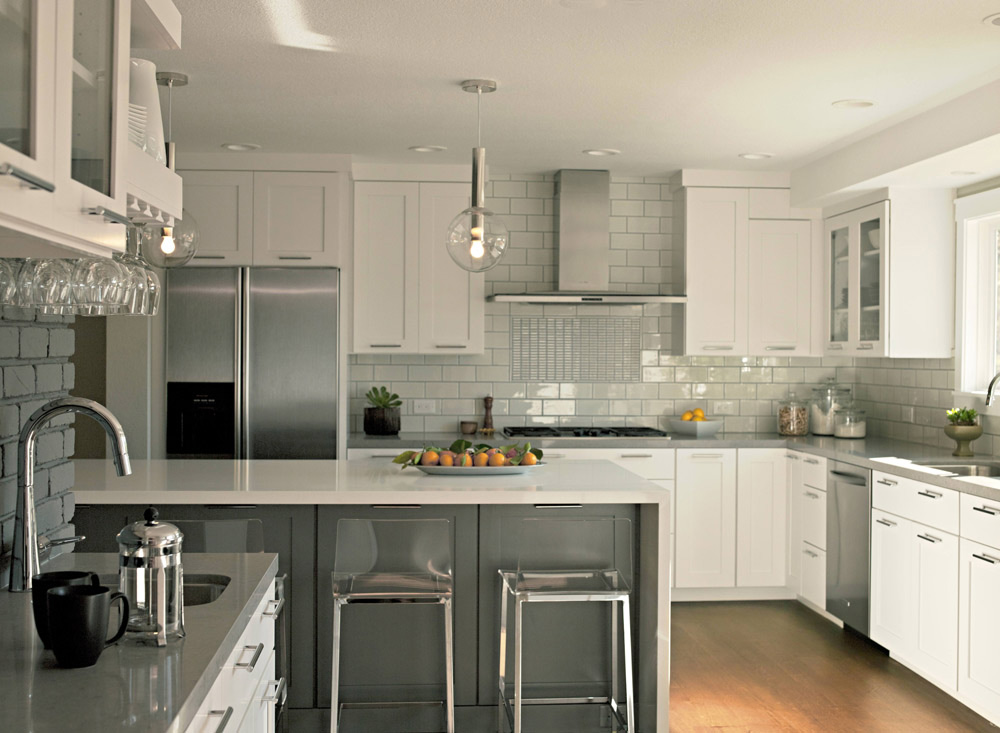 Для маленького помещения лучше всего подойдет барная стойка, а большое можно зонировать с помощью острова, который обычно устанавливается посередине. Он может выступать как обеденная и рабочая зона, а также как место для хранения утвари и посуды.