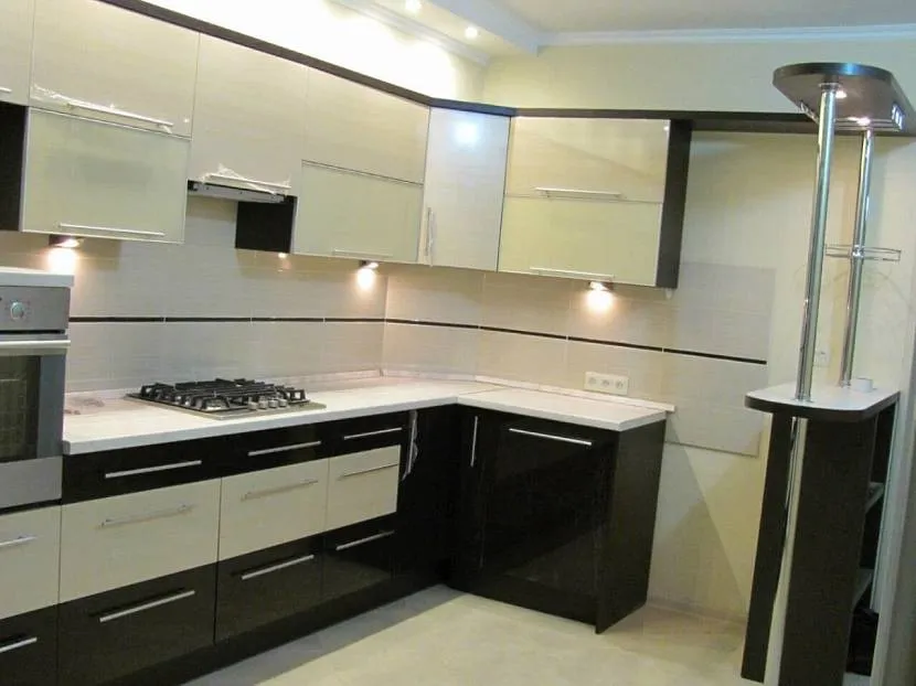 Проектирование дизайна угловых кухонь рекомендуется проводить, учитывая площадь помещения. В маленьких комнатах рекомендуется устанавливать барные стойки, занимающие минимум пространства и отличающиеся функциональностью в использовании. Они хороши для: