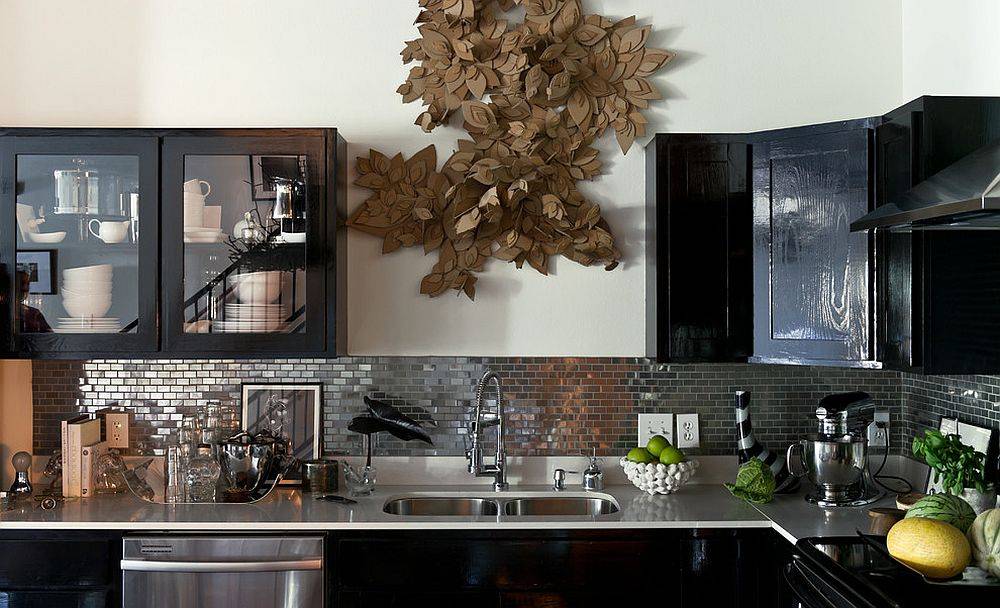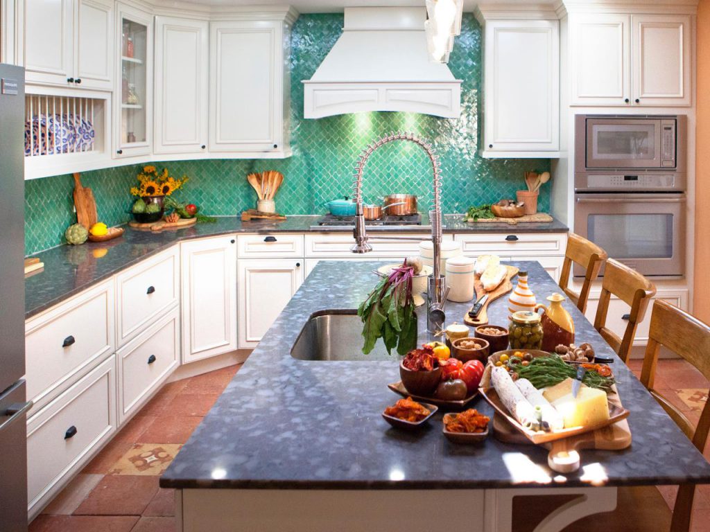 К примеру, если сделать фартук ярким или с активным рисунком, то всё, что вокруг него (стены, фасады), оставьте нейтральным.