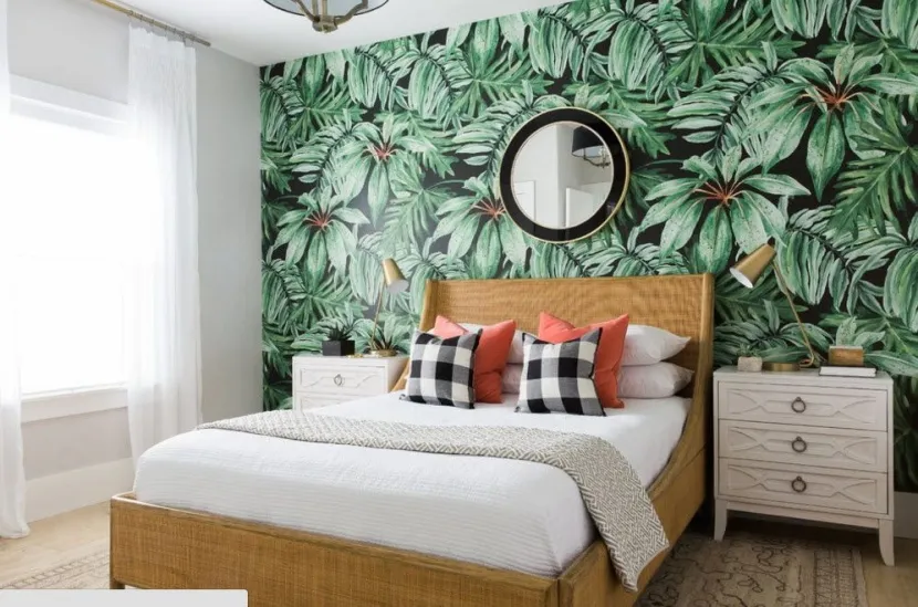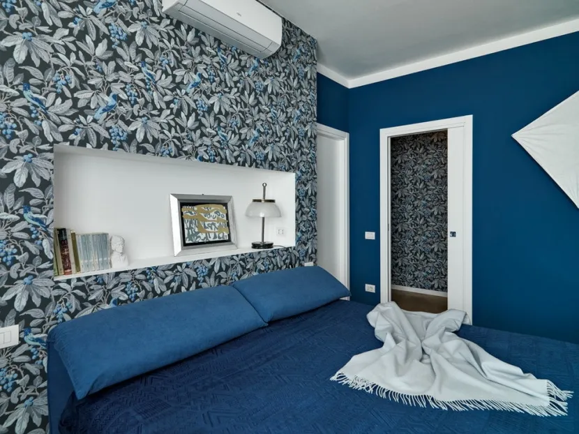 Акцентная стена оформляется в ярких оттенках, с узорами, цветочным принтом или абстракцией. Другие стены должны сочетаться с главной. Для этого необходимо подбирать обои подходящей тональности.