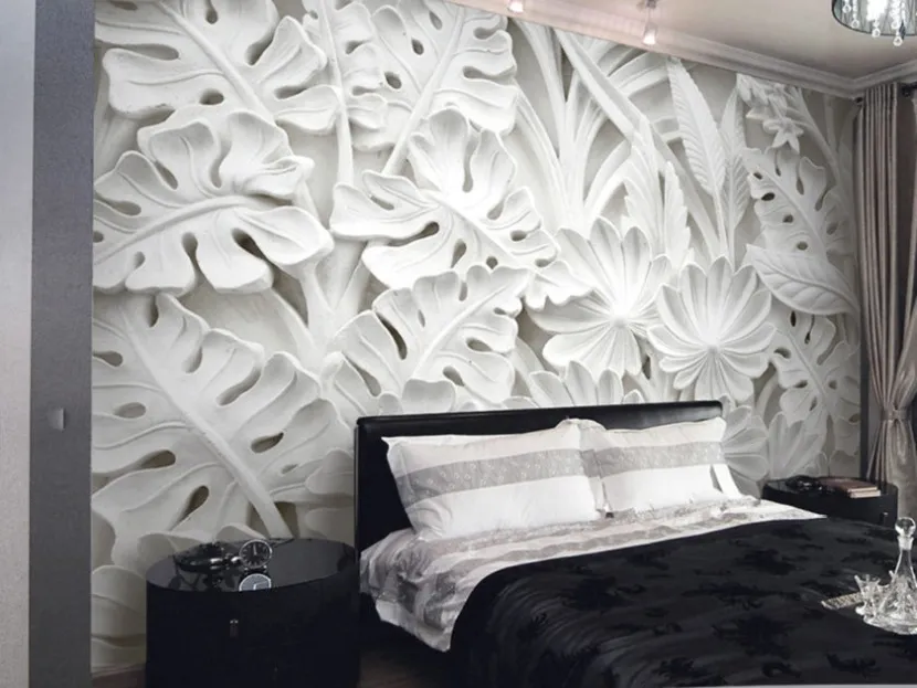 Это более привычные нам рулонные обои, но разница заключается в том, что они содержат трехмерные изображения геометрических узоров, абстракций или цветочных принтов. Стандартные фотообои 3д могут довольно эффектно оформить комнату, если будут оклеены все стены или же выделена отдельная функциональная зона. Их достоинство заключается в простоте монтажа, так как не требуется четкая стыковка рисунка.