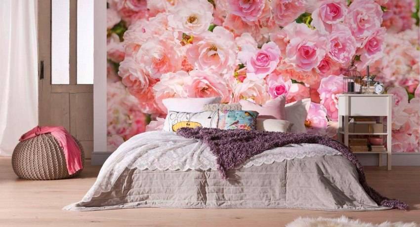 У изголовья кровати можно использовать объемные изображения, имитирующие натуральную древесину, кирпичную кладку, камень, бамбук или растущий лес.