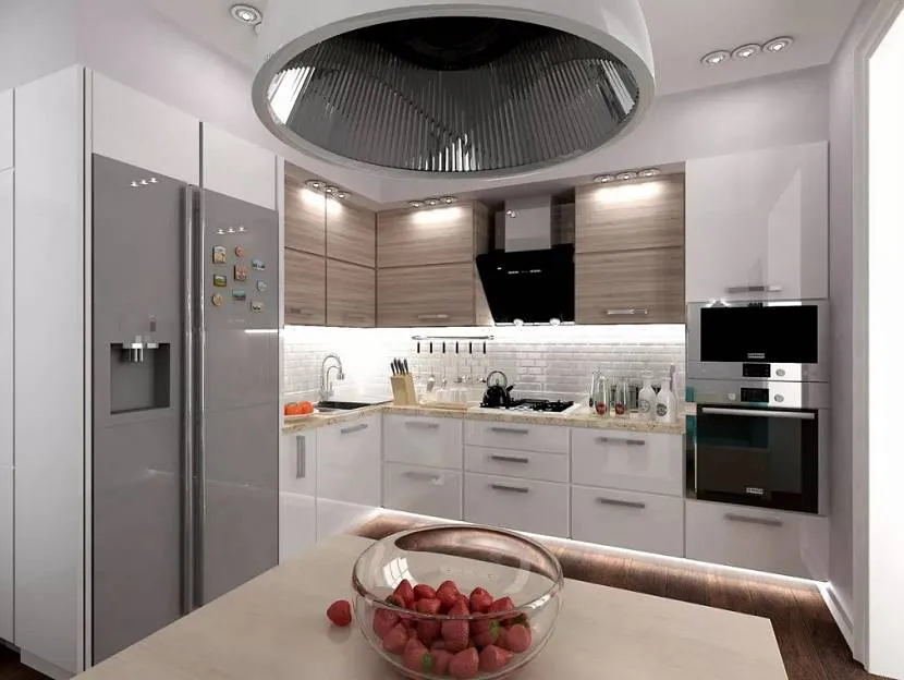 Проект угловой кухни зависит от размера помещения. Отмечают основные: