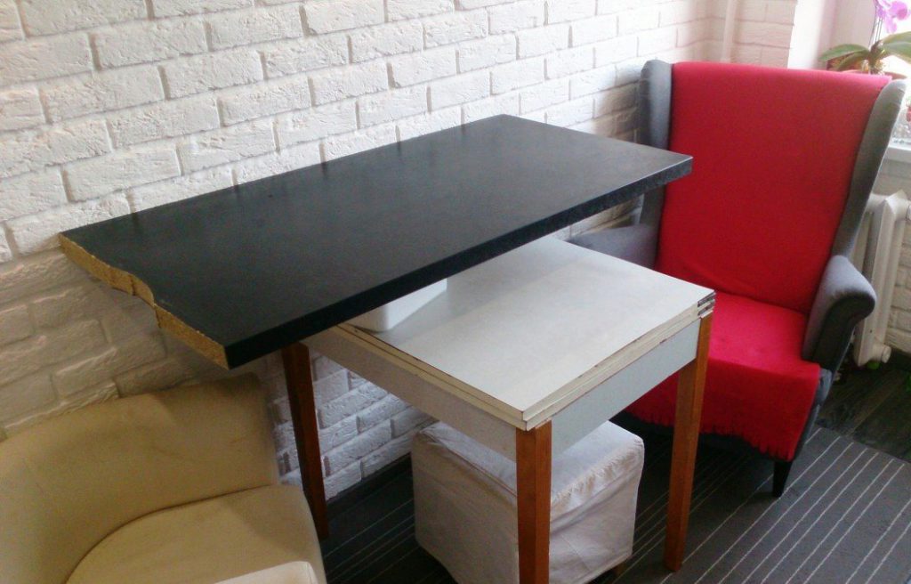 4. Стол-подоконник. В таких кухнях подоконник, переходящий в столешницу, рассчитан не более, чем на 2-х человек. Варианты использования те же, что и у барной стойки.