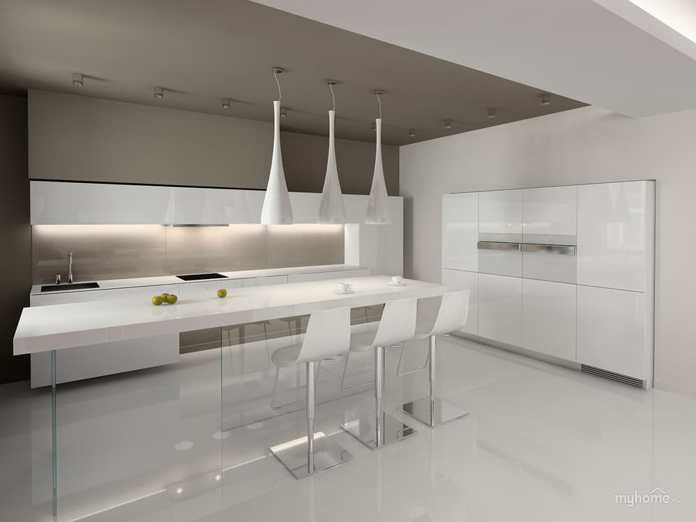 Король цветов для кухонь — белый. Он сочетается с другими цветами, выглядит свежо и стильно. Белый часто используют в разных концепциях интерьера — начиная от создания скандинавского стиля и заканчивая монохромным минимализмом, нежным провансом.
