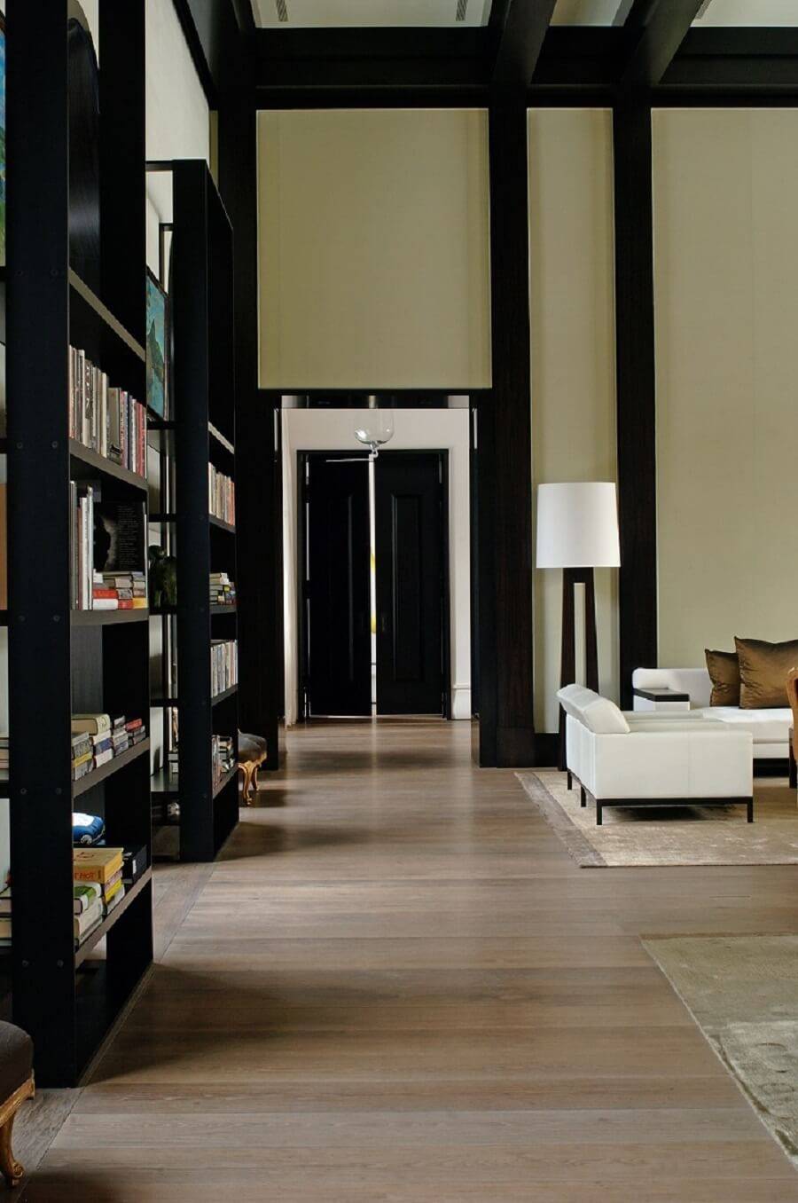 Еще один их интерьер в белом, оливковом и черном тонах. Черное акцентирование подчеркивает высоту потолков.
