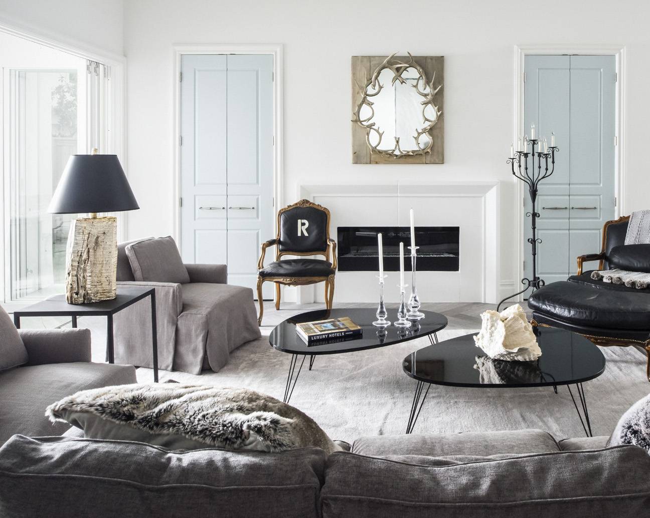 Интерьер, в котором сочетаются классические цвета: белый, черный и серый. Нежные акценты теплых тонов подчеркивают характер интерьера.