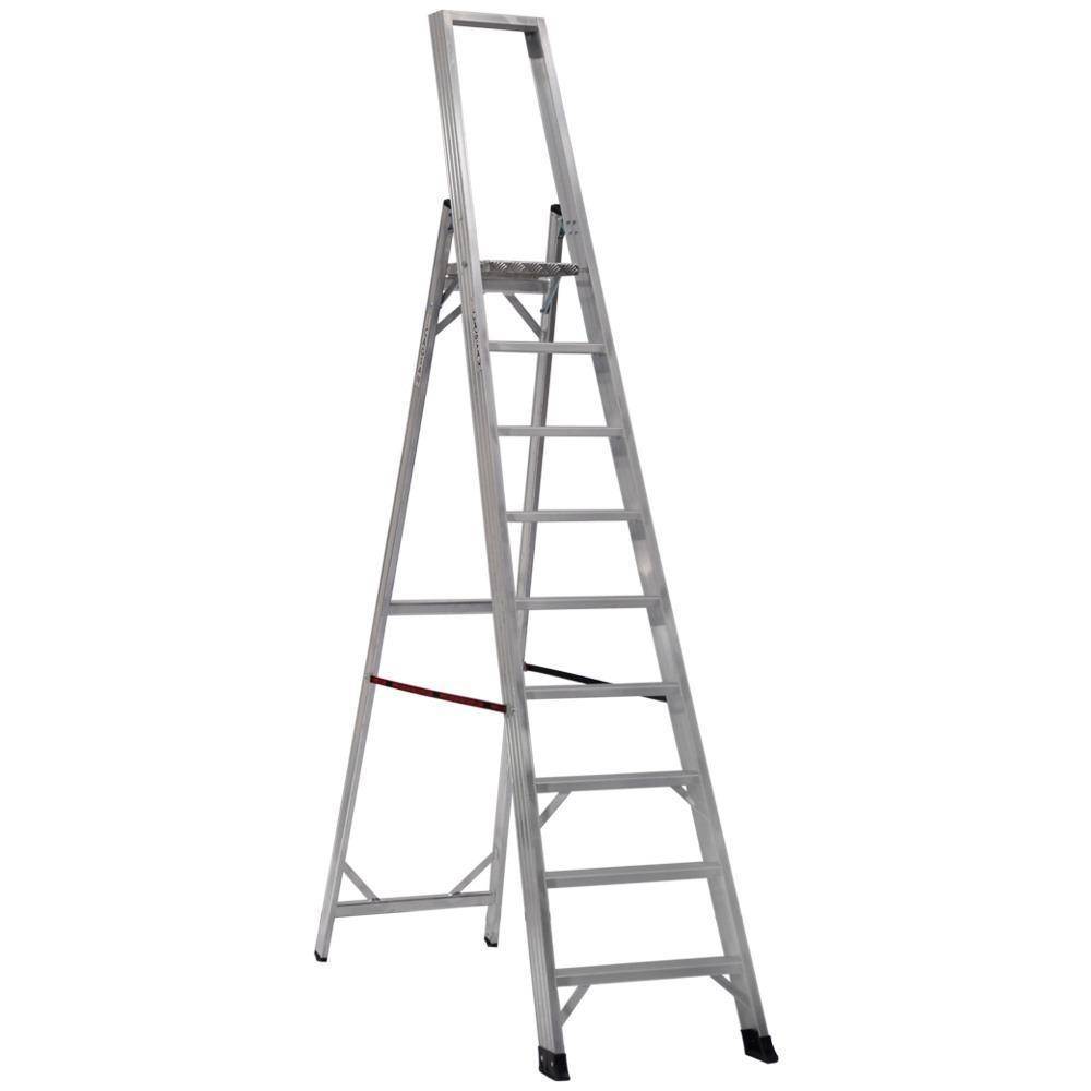 Бытовые лестницы чаще всего имеют до 8 ступеней, что обеспечивает подъем на высоту 1,7 м. Такие конструкции могут весить до 5 кг. Вес профессиональных стремянок в 3-4 раза больше, однако возможная высота подъема достигает 3 м.