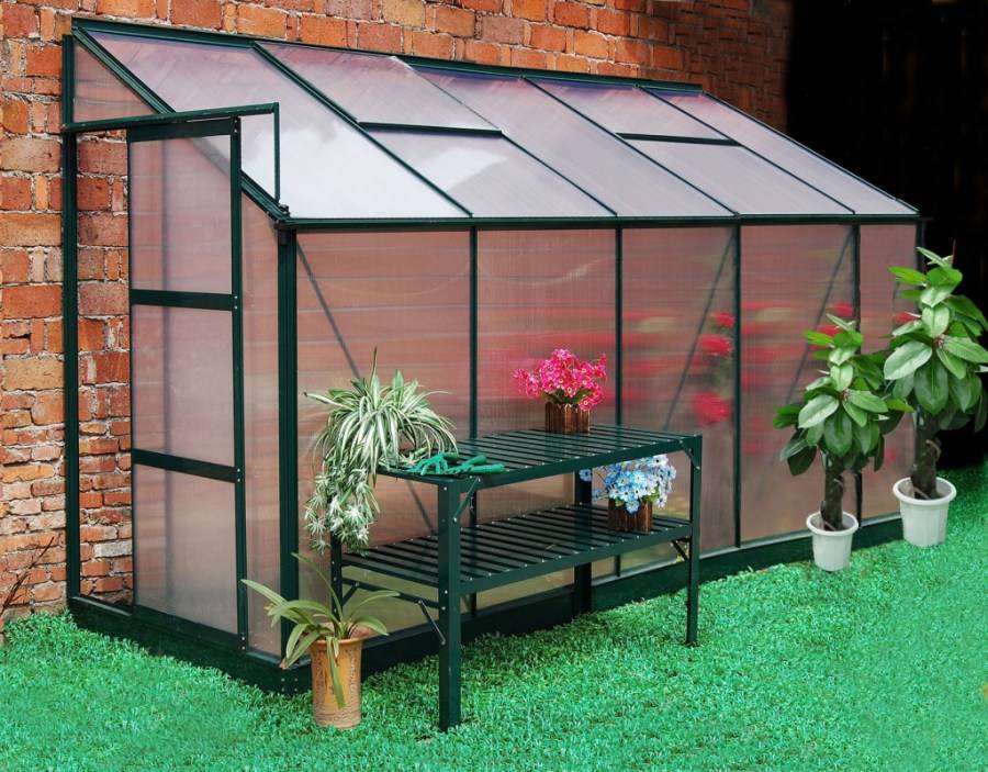 Односкатные, примыкающие к стене. Как правило, их устанавливают около южной части дома. Довольно часто, в них делается вход с улицы и из дома. Как правило, такие пристройки оборудуются системой отопления для эксплуатации в холодное время года. Двускатные. Это отдельно стоящие строения, которые имеют собственные стены, крышу и двери. Прямые формы позволяют выращивать высокие и вьющиеся растения. Благодаря полному остеклению обеспечивается высокая степень освещенности теплицы. Арочные. Учитывая то, что стекла представляют собой ровные прямоугольники, арки представляют собой конструкции с ломаными линиями. Такие строения устойчивы к снеговым и ветровым нагрузкам. Смотрятся они весьма экзотично и интересно. Куполообразные. Эти строения имеют высокую эстетическую составляющую. Как правило, они изготовляются на заказ и оборудуются раздвижными дверями.