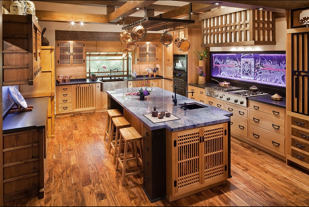 Для этого народа приготовление пищи является не простым банальным процессом, а целым ритуалом, который обеспечивает чувство гармонии души и тела. Поэтому, приступая к проектированию, руководствуйтесь этими, можно сказать принципами.