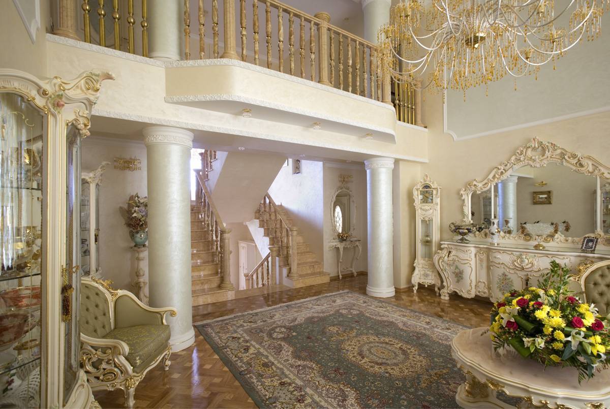 В барокко интерьерах напыщенная роскошь удивительным образом сочетается со стилем и элегантностью. Такое оформление часто выбирают знаменитости, политические деятели, владельцы загородной недвижимости.
