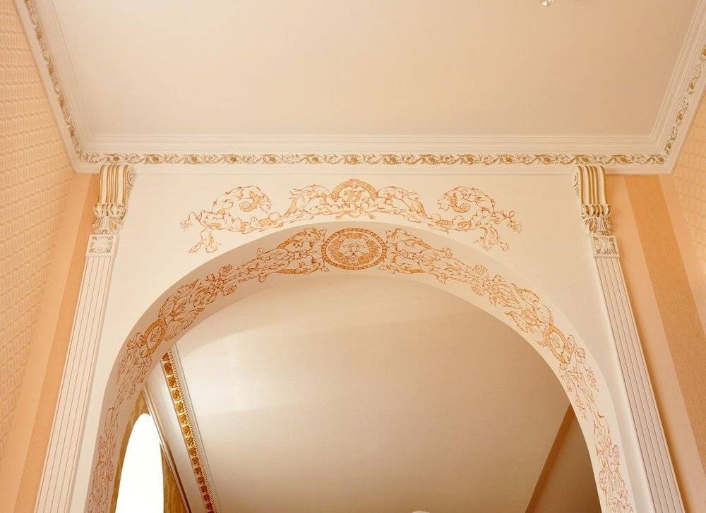 Лепнина, а также недорогие пенополистирольные изделия в виде всевозможных фигур и кружева помогут мгновенно украсить любую арку. Благодаря маленькому весу, они легко приклеиваются к гипсокартонному основанию.