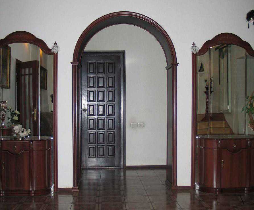 Очень похож на обычный проем, да это по сути он и есть, только без дверного полотна. Для большей оригинальности часто сопровождается деревянными резными элементами в виде колонн по бокам. В таком виде хорош для классических интерьеров, а также этно-стиле — греческом или римском, в зависимости от типа колонн.