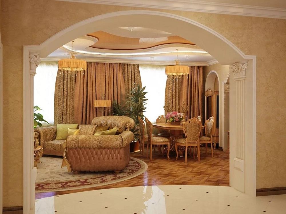 Наиболее эффектный материал. Внешний вид арки делает интерьер помещения ярким и оригинальным.