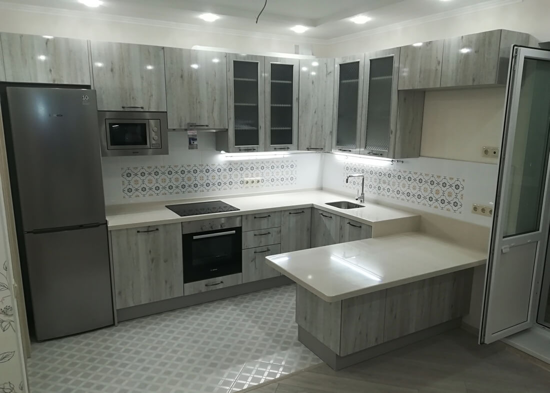 В текущем сезоне в оформлении угловых кухонь в моде: