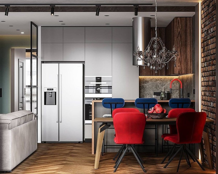 Чтобы кухня выглядела более изысканно и элегантно, стоит комбинировать серый цвет с коричневым, бордовым, черным, темно-фиолетовым, фисташковым. Если есть желание оживить интерьер, сделать его ярким и оригинальным, рекомендуется сочетать серый цвет с такими яркими оттенками, как оранжевый, розовый, салатовый, желтый, красный, синий.