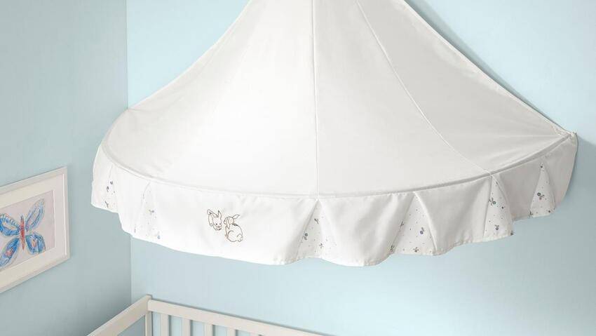Балдахин над детской кроватью будет скапливать пыль, в этом и есть одно из его назначений. Стирать кроватный убор нужно часто