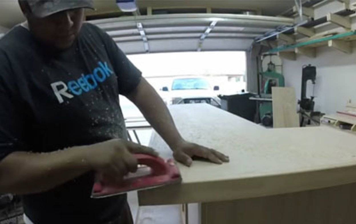 - Столешницу необходимо идеально отшлифовать, обработать специальными материалами, которые служат как средство от воспламеняемости, после покрывают лаком.