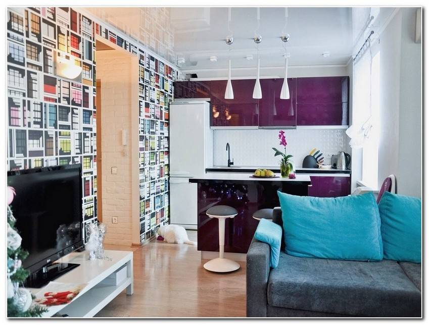 Для просторных квартир-студий и гостиных, совмещенных с кухней, стойка может играть роль перегородки между кухонным помещением и зоной отдыха. Часто столешница для барной стойки является продолжением выступа ниши или другой мебели, которая примыкает со стороны кухни.