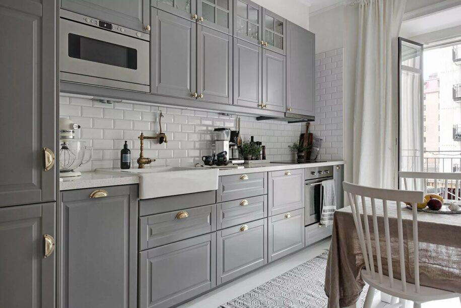 Универсальность кухонь Будбин позволяет использовать мебель в любом дизайне. Серия выделяется отсутствием лишнего декора и замысловатости, что помогает создать гармоничное и уютное оформление. Нейтральность серого цвета корректирует недостатки помещения.