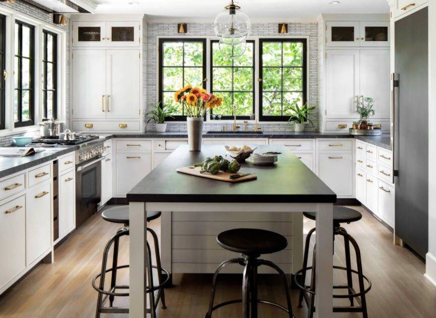 Идея 3. Белая кухня с темными акцентами