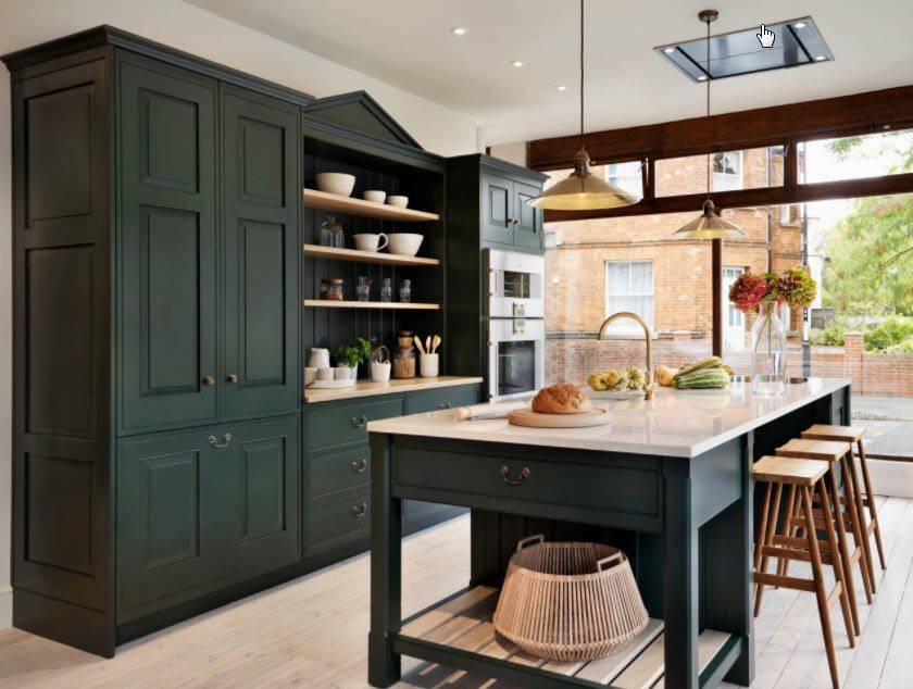 Большинство оттенков зеленого умиротворяет. Кухня-столовая, интерьер которой выполнен в таких тонах, станет оплотом спокойствия.