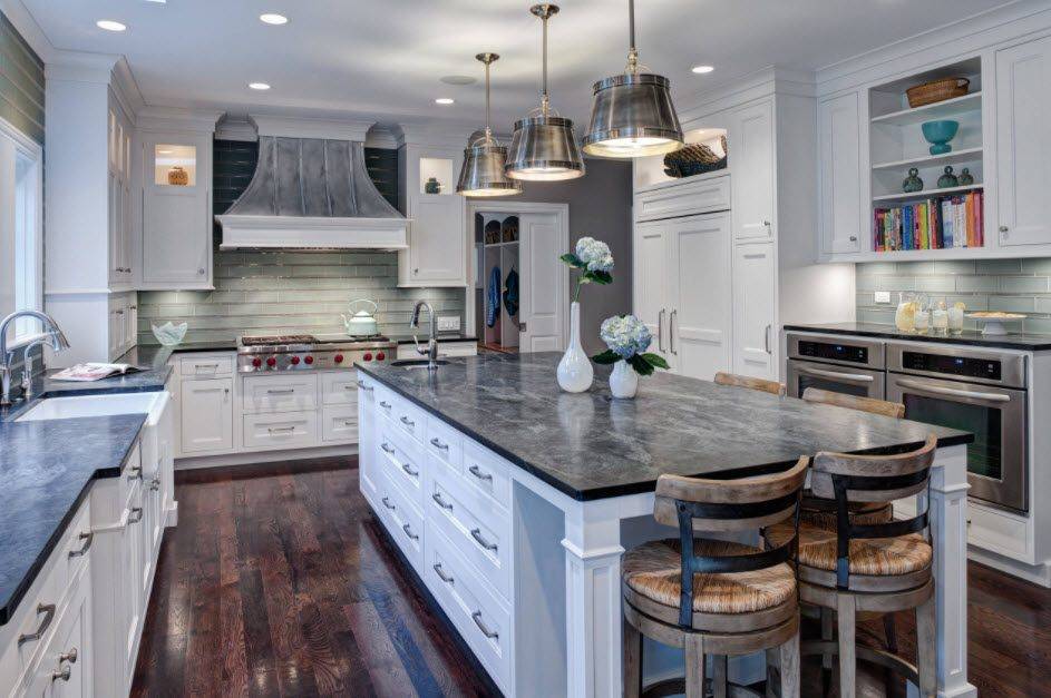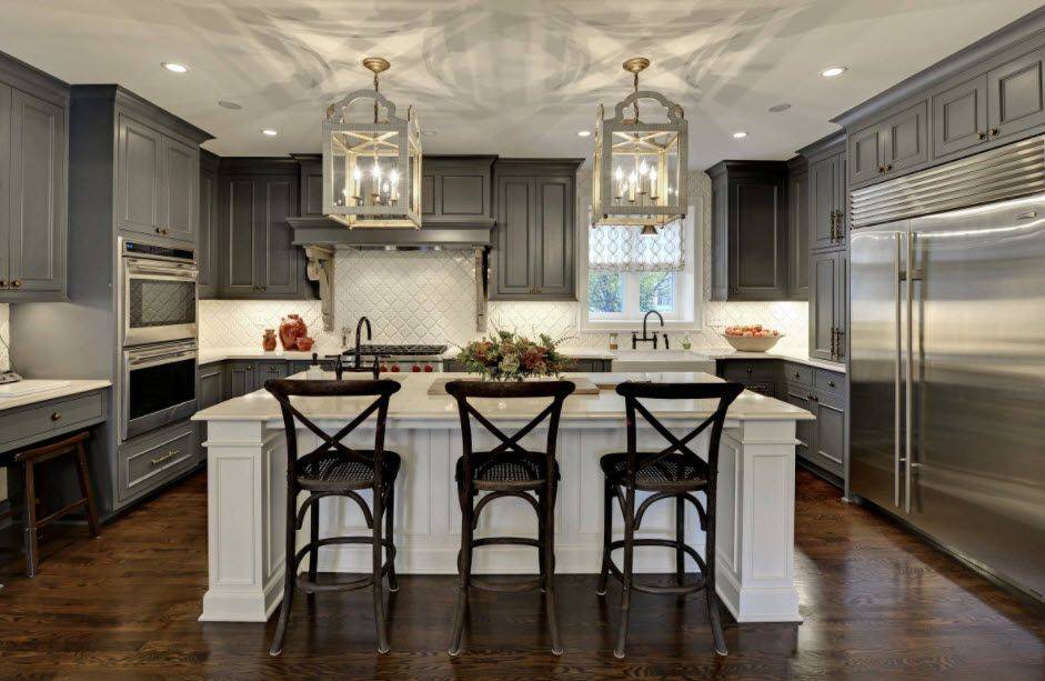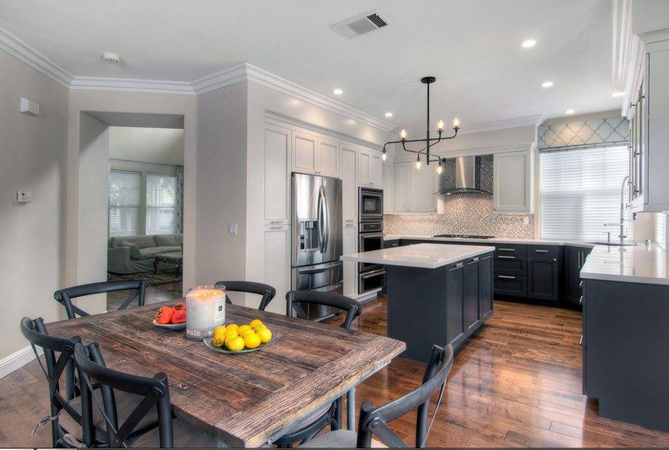 В больших кухнях-столовых будет уместным использовать темно-серый цвет.