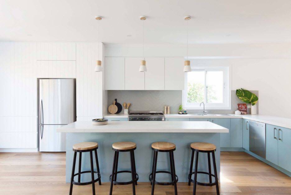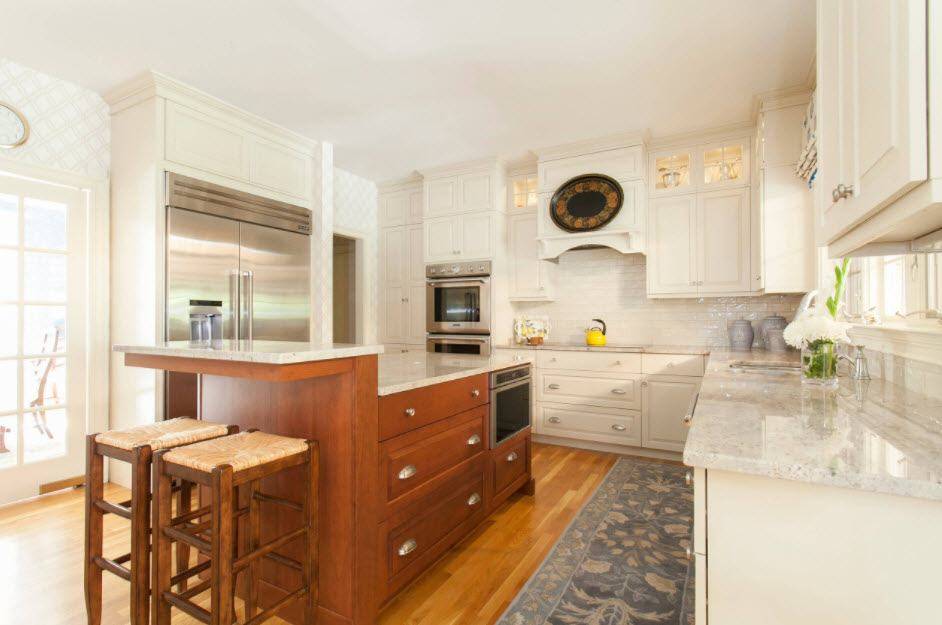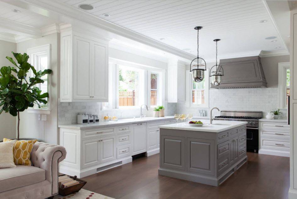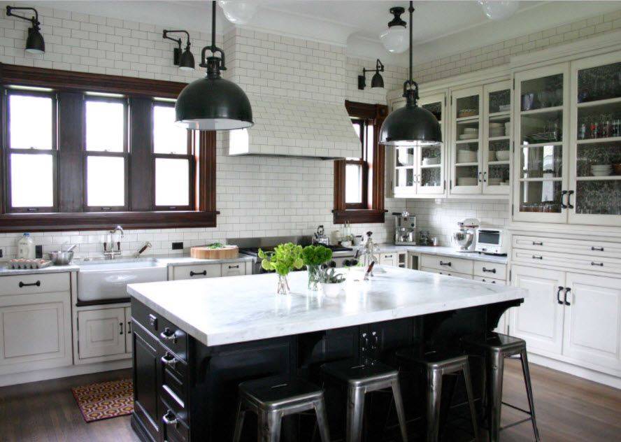 Универсальные белые оттенки органично вписываются в любые стилевые оформления кухни. Приведём лишь несколько наиболее распространённых примеров.