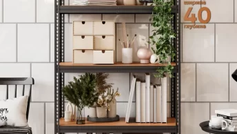 Предметы мебели часто устанавливают по центру комнаты. Обычно пространство разделяют с помощью: дивана, обеденной группы или стеллажей. На стеллажах можно расставить множество декоративных элементов: горшки или вазы с цветами, книги, красивую кухонную посуду и прочее.