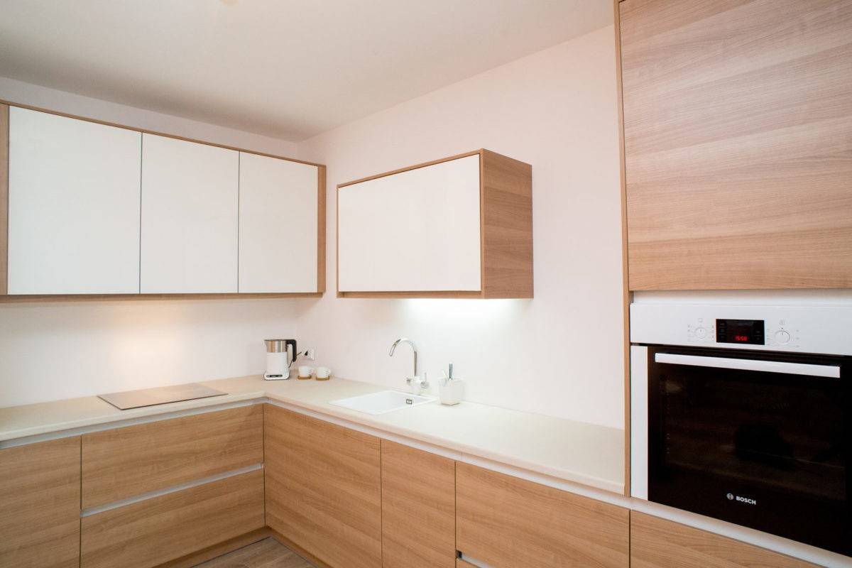 Часто от ручек отказываются именно на маленьких кухнях, где важен буквально каждый миллиметр площади. Особенно популярно такое решение на угловых кухнях, когда из-за выступающих ручек невозможно открыть рядом стоящие шкафы.