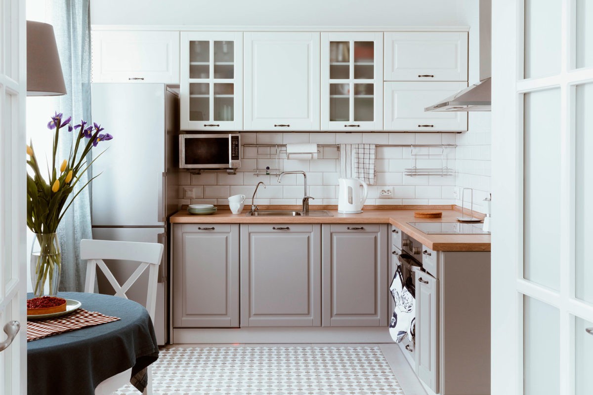 Выбор конфигурации кухни с белыми фасадами зависит от размера помещения и планировки.