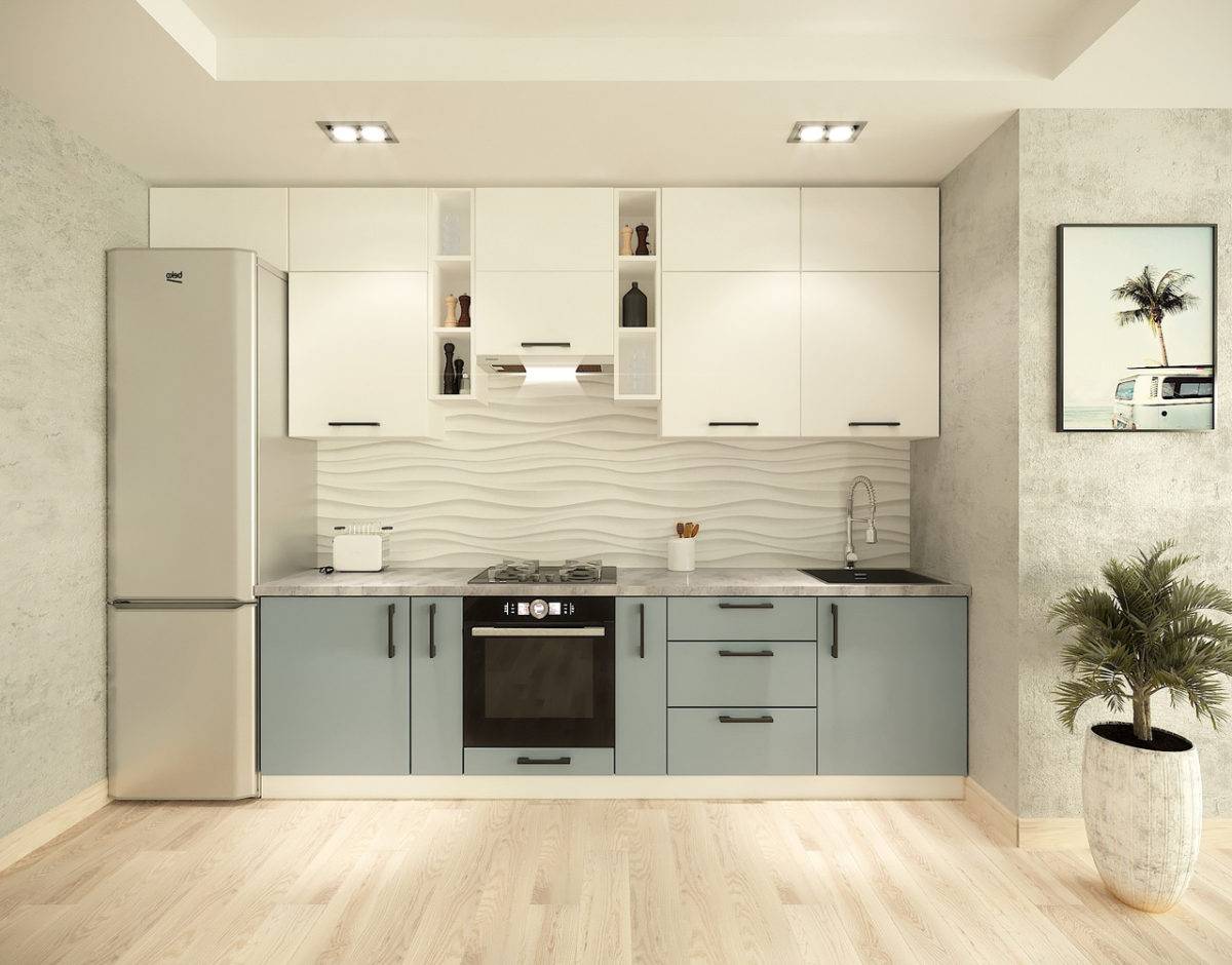 Линейный (прямой) гарнитур может быть небольшой длины (до 2,5 м) и компактно поместиться в маленькую кухню. Все находится на одной линии: раковина, кухонная плита, рабочая поверхность. Длинные гарнитуры (до 4 м) размещаются вдоль стены просторной кухни и освобождают место для большого обеденного стола и лаундж-зоны.
