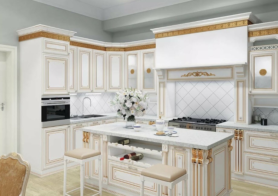 - Белая кухня в классическом стиле – штудируем теорию и воплощаем на практике
