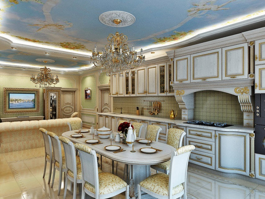 Оригинальным решением, не противоречащим классическим канонам, будет эффектная потолочная роспись.