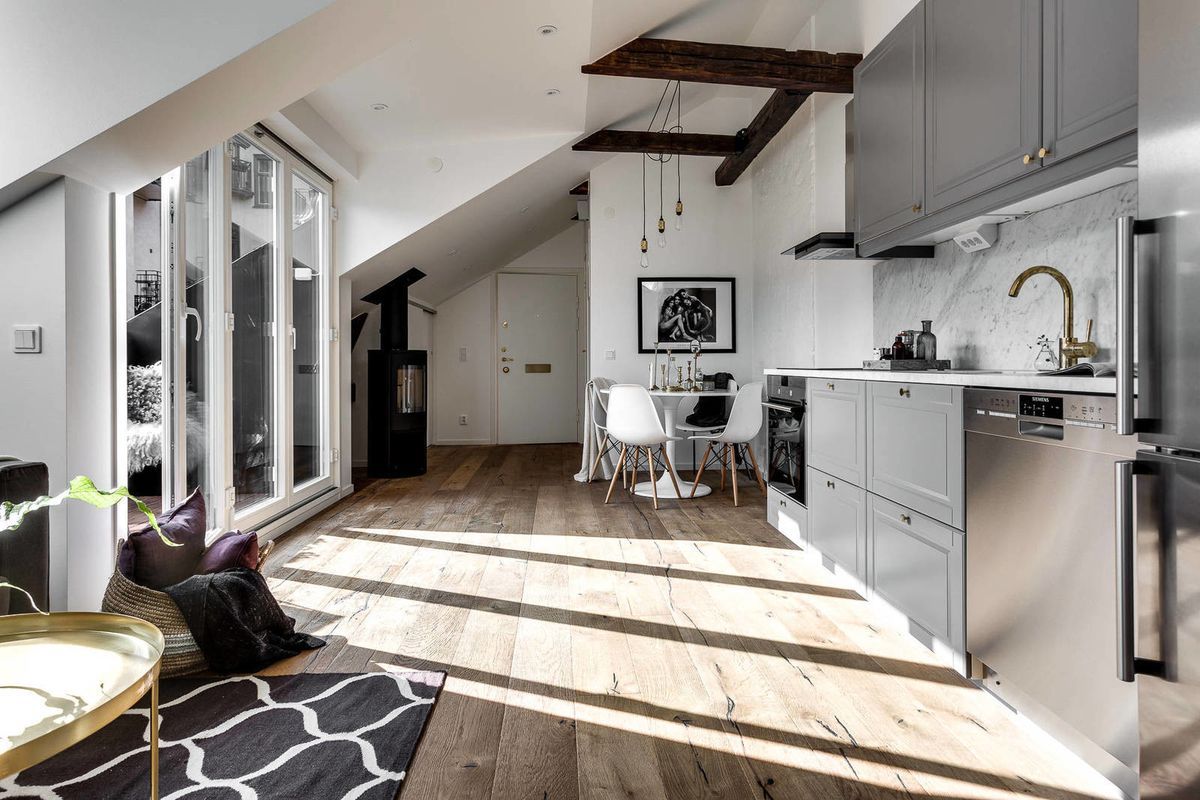 Двухкомнатная квартира на мансарде с совмещённой кухней и гостиной