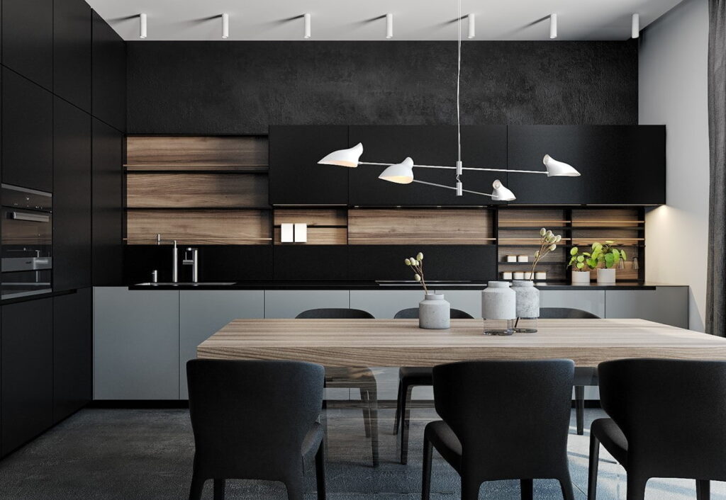 Черная кухня в стиле минимализм