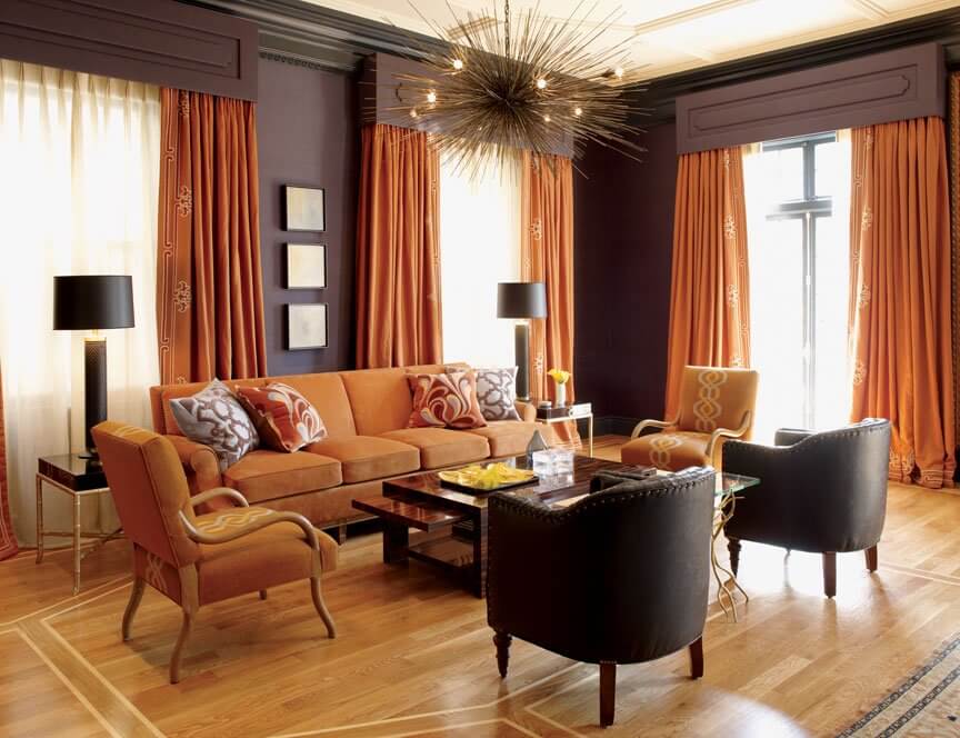 Одним из самых распространенных и популярных сочетаний стала пара оранжевого и коричневого цветов, характерная для восточного и африканского стилей дизайна.