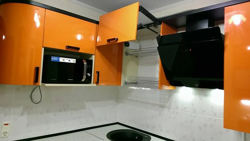 Внимание также будет уделяться расходу свободного пространства. Многие кухонные гарнитуры оставляют между потолком и верхним шкафчиком зазор