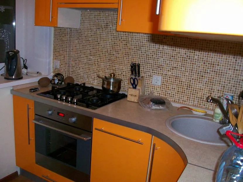 Пока мы говорили об использовании оранжевого в общих чертах, а теперь давайте перейдём к конкретным деталям. Фартук – первый по значению акцентный участок в любой кухне. Именно здесь имеет смысл проявить все дизайнерские таланты в оформлении. Но тут вы сразу столкнётесь с проблемой: найти типовые материалы для отделки в оранжевом цвете не так просто. Давайте разберёмся, какие варианты имеются.
