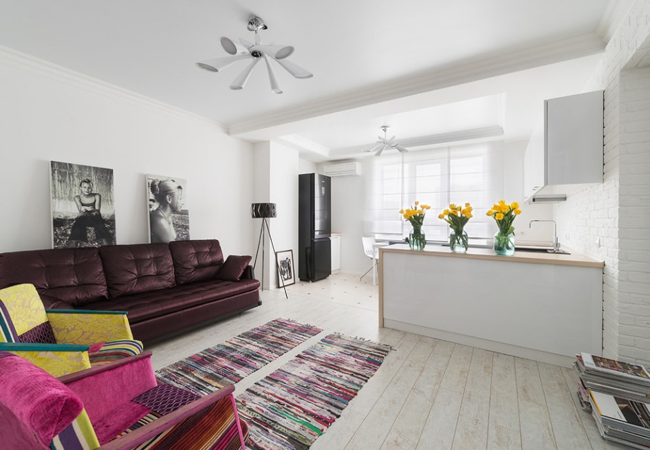 Довольно большая часть людей все же предпочитают делать кухня-гостиную более светлой или же яркой. Согласитесь, чтобы добиться такого эффекта можно просто добавить несколько насыщенных, броских акцентов.