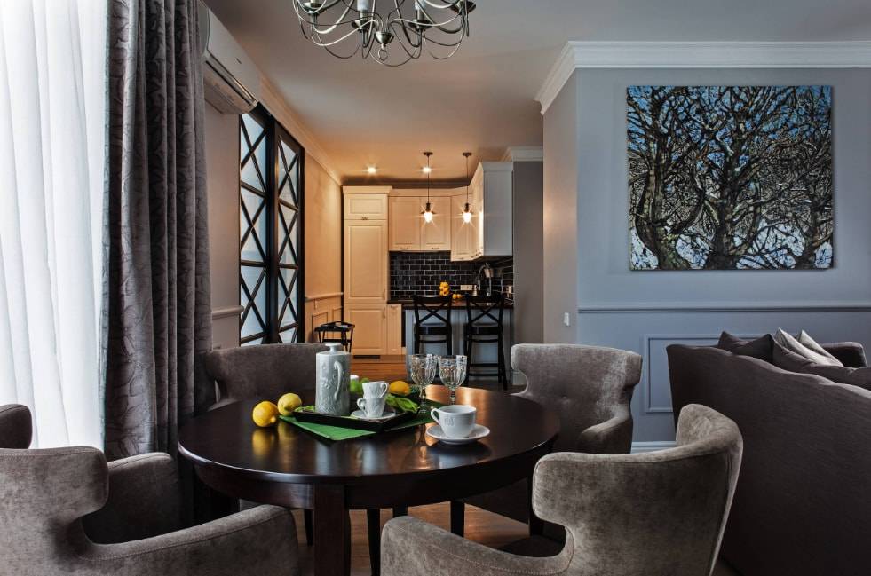 - Достижение баланса между ежедневными потребностями членов семьи при оформлении интерьера: он будет менее официальным, чем гостиная, но более представительным, чем кухня.