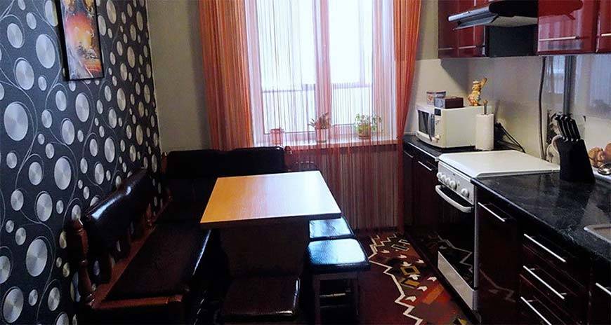 Рассмотри возможность увеличения площади кухни. Возможно, к ней примыкает лоджия или балкон – их можно присоединить к территории, утеплить и оборудовать там обеденную зону.