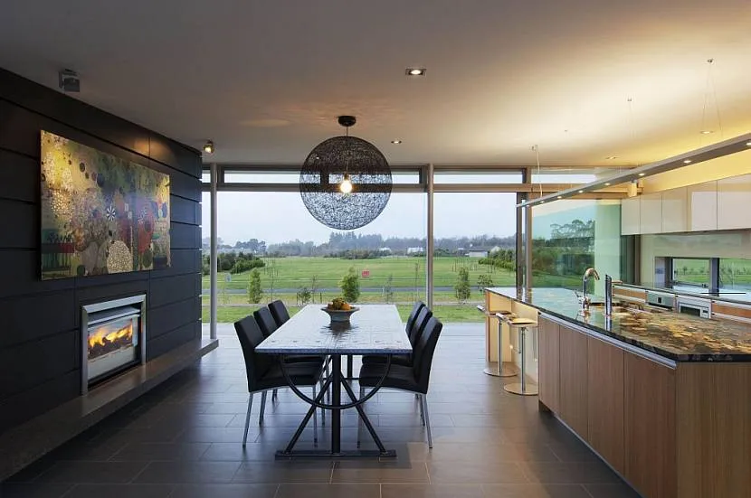 Возможности меблировки обеденной зоны ограничивает ее площадь. Однако для оформления интерьера небольших помещений с панорамными окнами тоже можно найти интересные варианты.