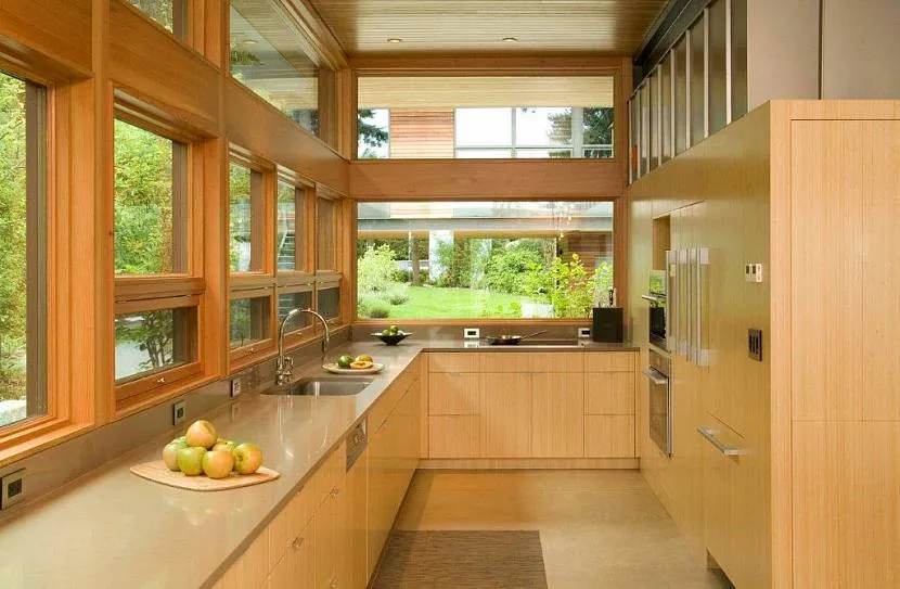 Интерьер кухни 15 кв. метров с открытым окном
