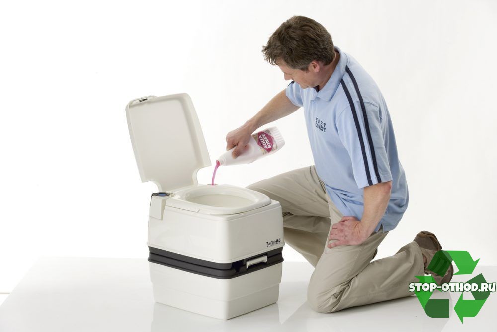 В химическом биотуалете для дачи происходит растворение отходов. Получившаяся при этом жидкость подлежит утилизации.