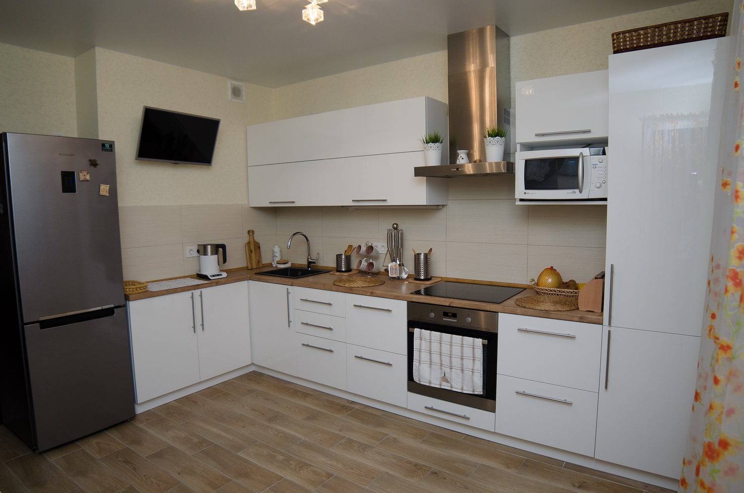 Совет! Чтобы кухня не выглядела слишком стерильно и не напоминала операционную, не стоит выбирать белоснежно-белый, режущий глаз цвет. Стоит отдать предпочтение более теплым его оттенкам: цвету яичной скорлупы, топленого молока, слоновой кости.