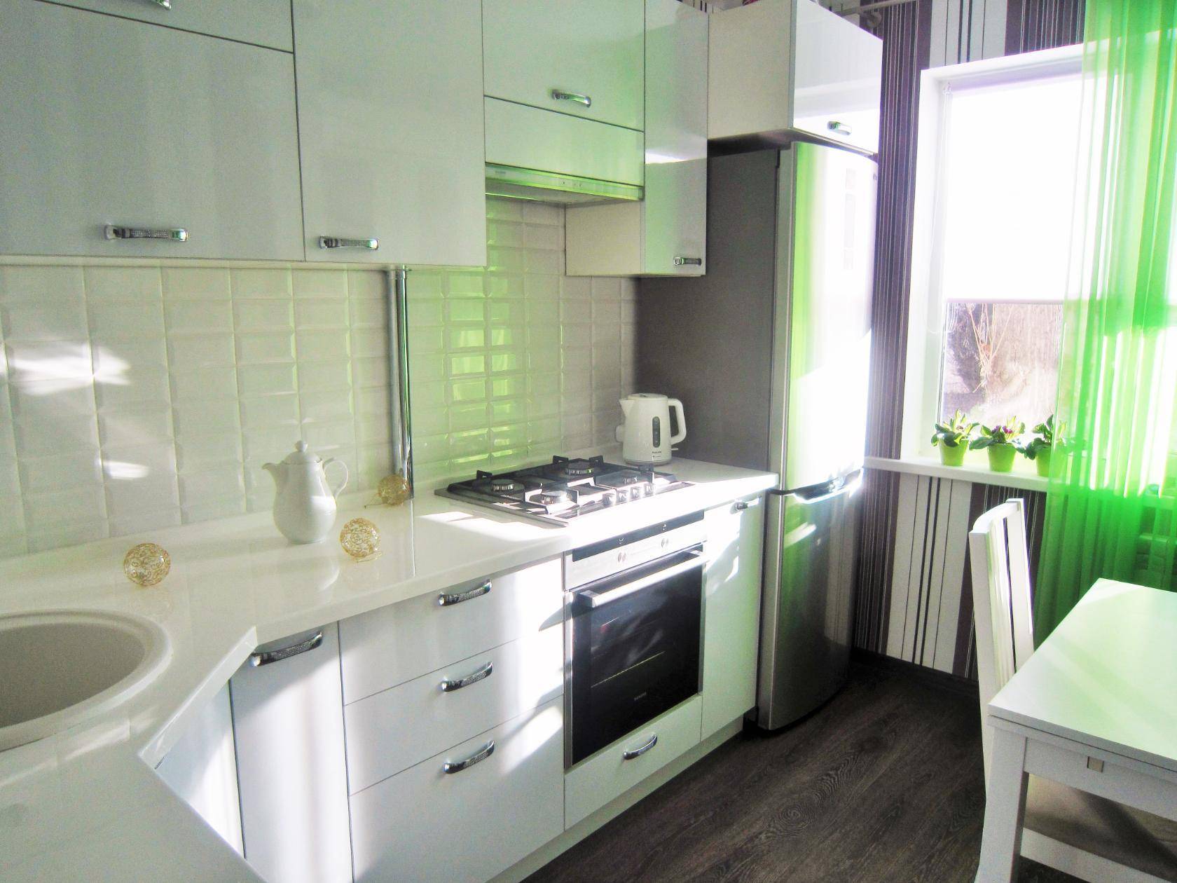 Белый цвет прекрасно подойдет для обустройства маленькой кухни, так как он визуально увеличит помещение, сделает его более просторным и наполненным светом.